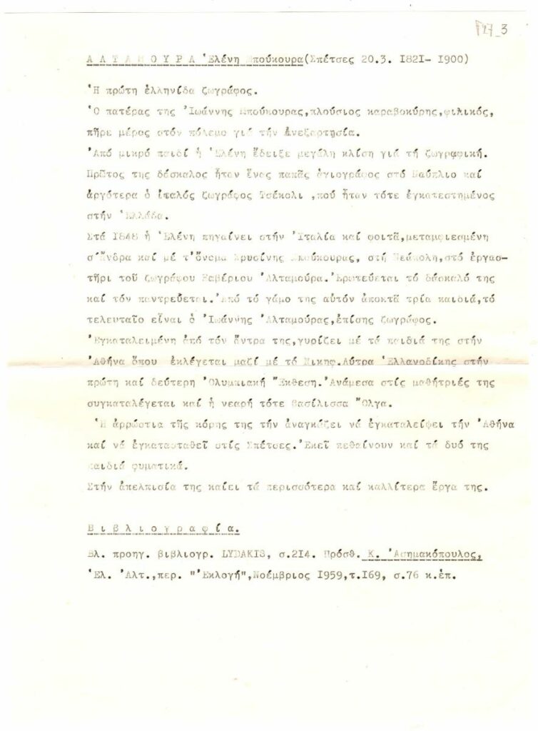 Βιογραφικό, δακτυλόγραφο, χαρτί, 29×21εκ., στα ελληνικά της Ελένης Αλταμούρα.