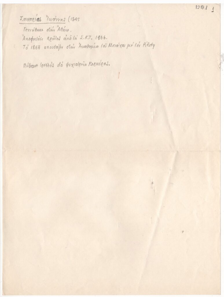 Βιογραφικό σημείωμα του Ιωάννη Ζαχαρία