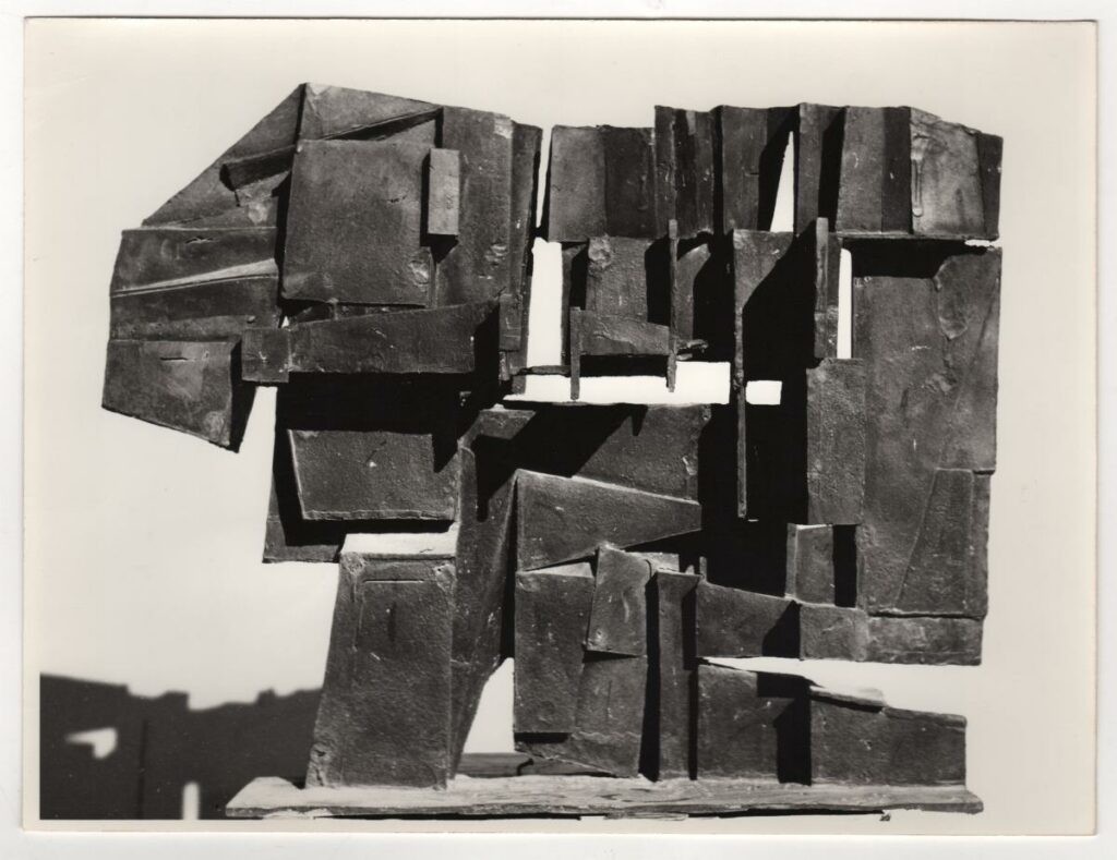 Ασπρόμαυρη εκτυπωμένη φωτογραφία έργου του Γιώργου Ζογγολόπουλου. Στην πίσω όψη επιγραφή.