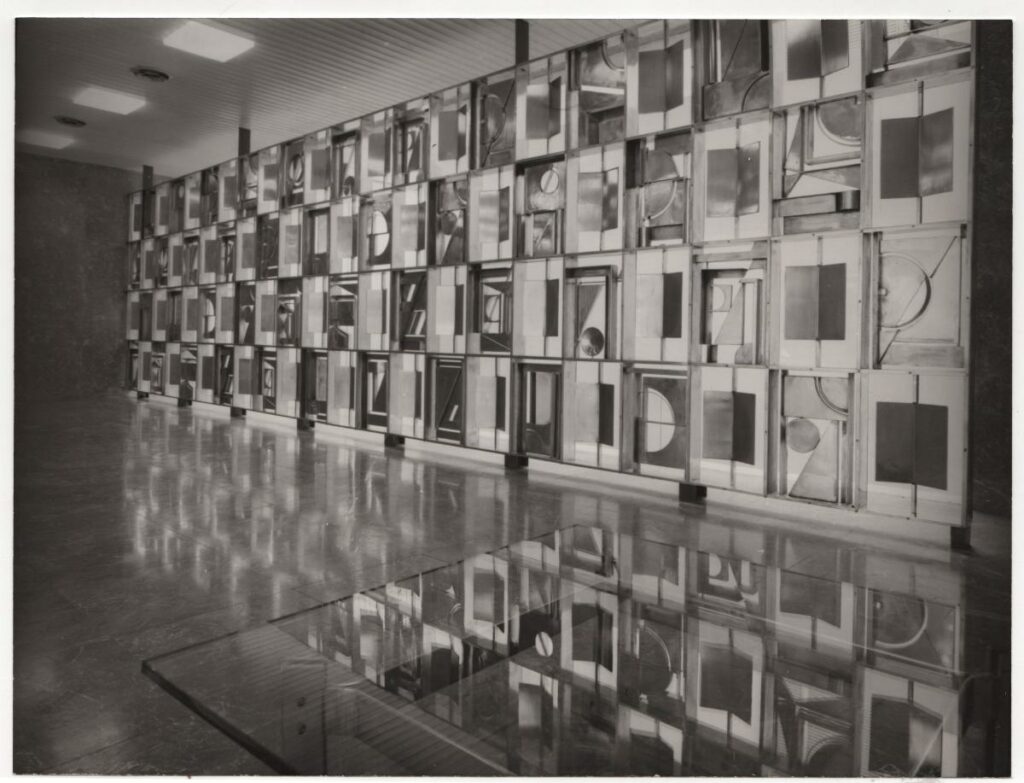 Ασπρόμαυρη εκτυπωμένη φωτογραφία έργου του Γιώργου Ζογγολόπουλου. Το γλυπτό είναι τοποθετημένο στα γραφεία της ασφαλιστικής εταιρίας “ΑΣΤΗΡ”. Στην πίσω όψη επιγραφή και σφραγίδα καλλιτέχνη.