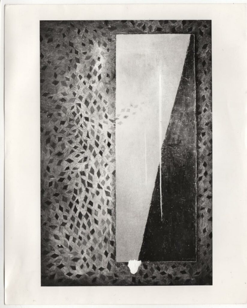 Ασπρόμαυρη εκτυπωμένη φωτογραφία έργου του Γιώργου Ζογγολόπουλου. Στην πίσω όψη, επιγραφές.