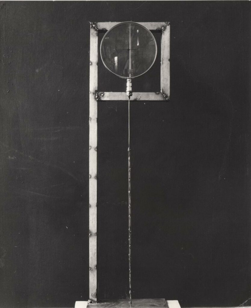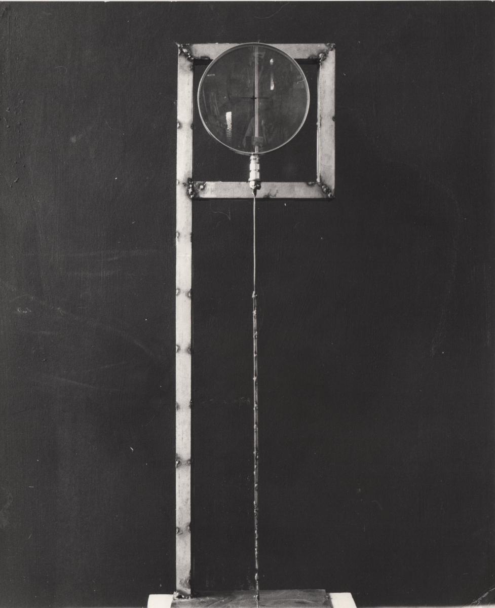 Ασπρόμαυρη εκτυπωμένη φωτογραφία έργου του Γιώργου Ζογγολόπουλου. Στην πίσω όψη, επιγραφές και σφραγίδα καλλιτέχνη.