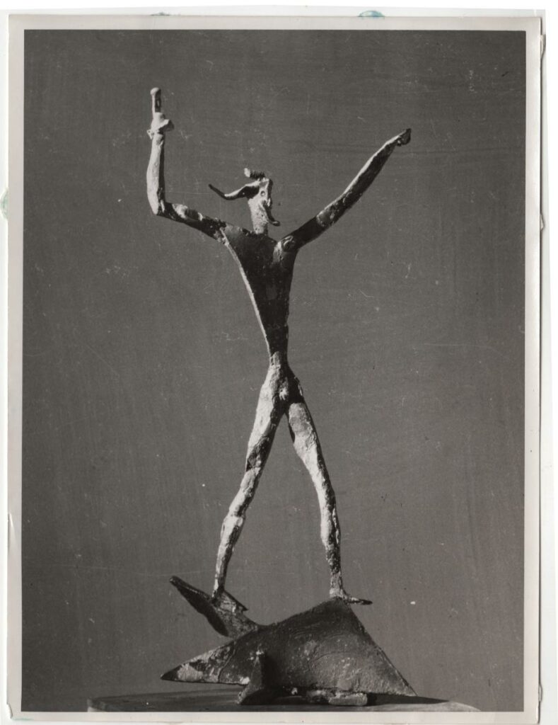 Ασπρόμαυρη εκτυπωμένη φωτογραφία έργου του Γιώργου Ζογγολόπουλου. Στην πίσω όψη, επιγραφές.