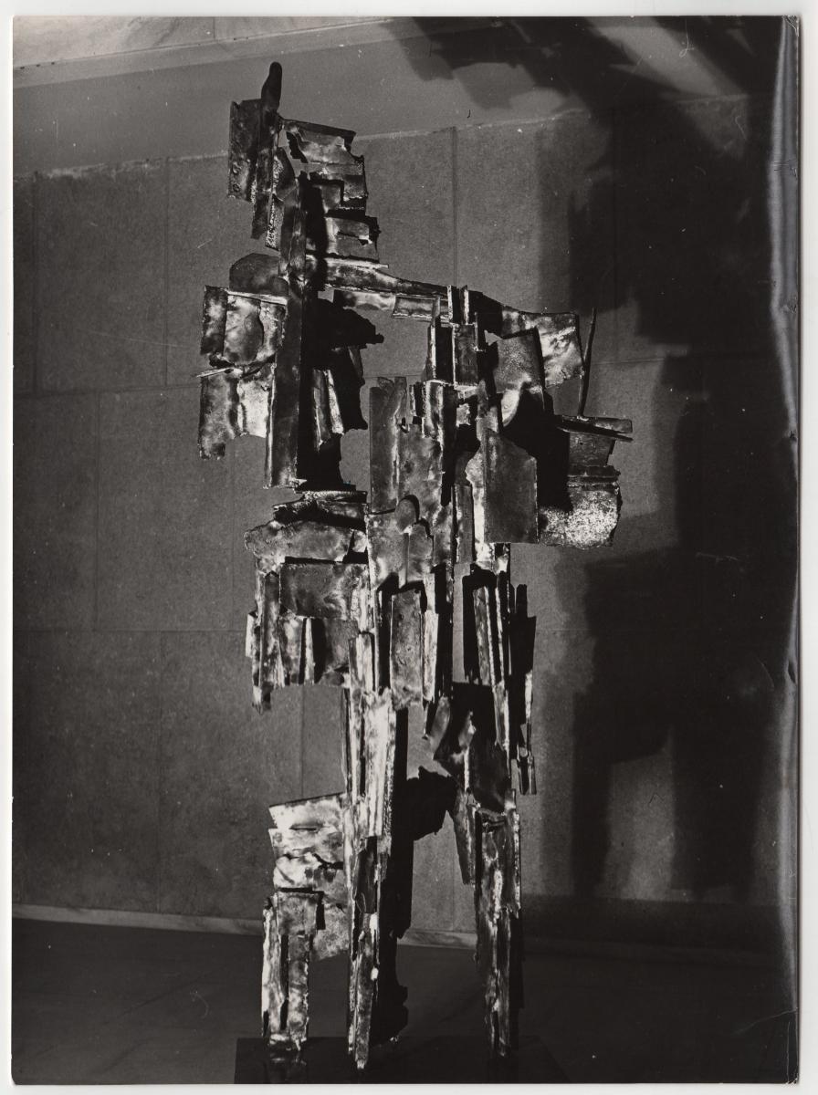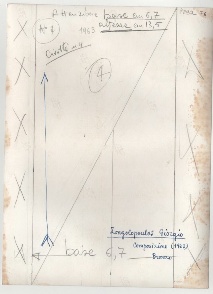 Ασπρόμαυρη εκτυπωμένη φωτογραφία έργου του Γιώργου Ζογγολόπουλου. Στην πίσω όψη, επιγραφές.