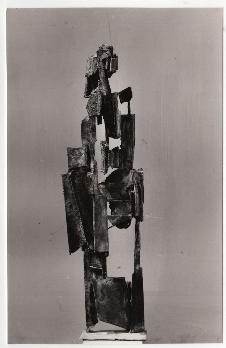Ασπρόμαυρη εκτυπωμένη φωτογραφία έργου του Γιώργου Ζογγολόπουλου. Στην πίσω όψη, επιγραφές.