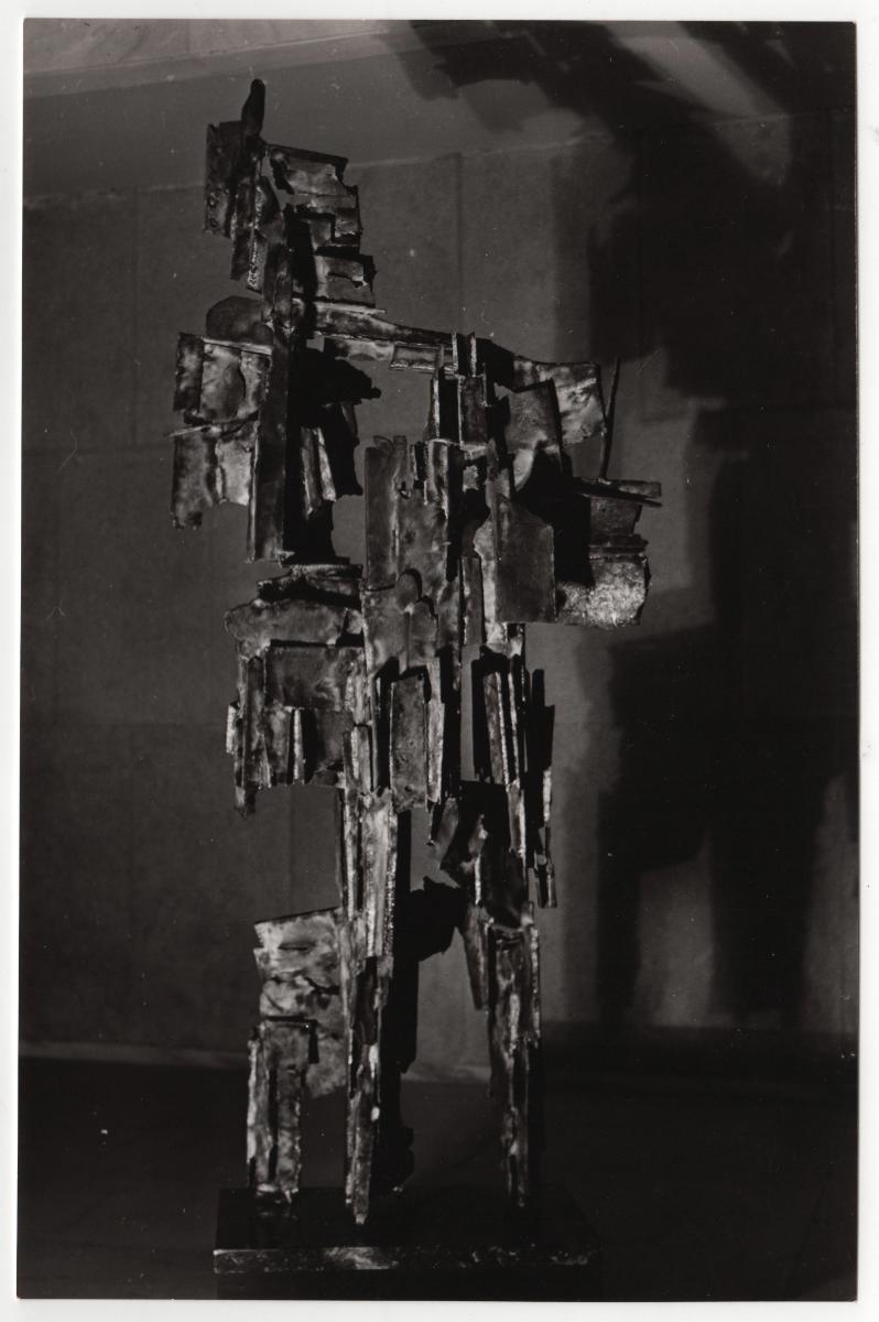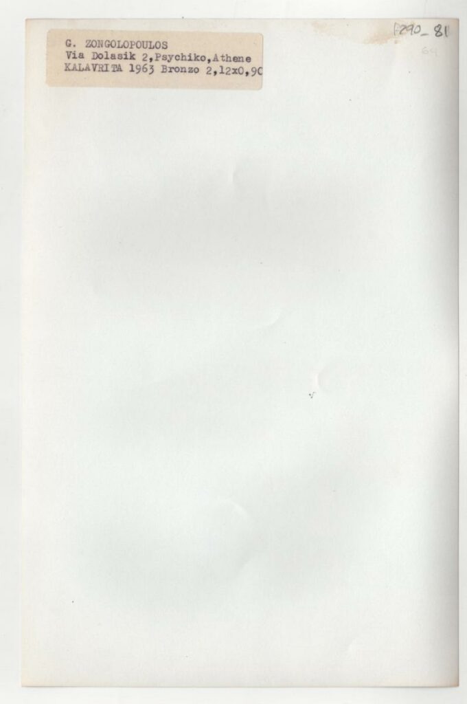 Ασπρόμαυρη εκτυπωμένη φωτογραφία έργου του Γιώργου Ζογγολόπουλου. Στην πίσω όψη, επιγραφές.