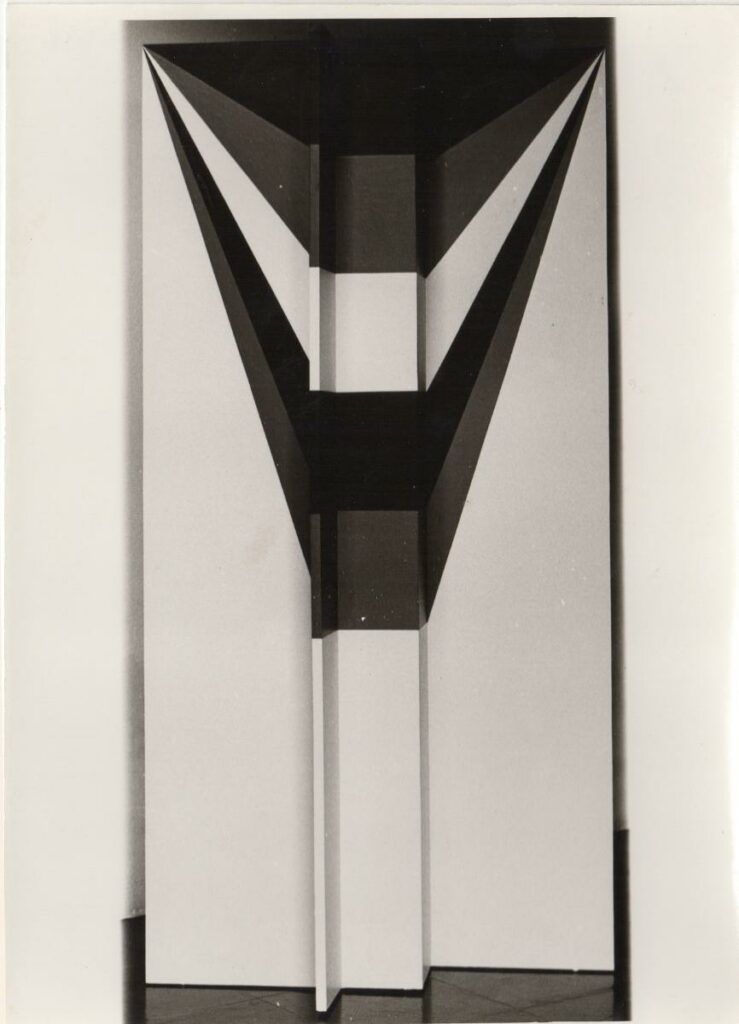Ασπρόμαυρη εκτυπωμένη φωτογραφία έργου της Όπυς Ζούνη. Στην πίσω όψη, επιγραφές.