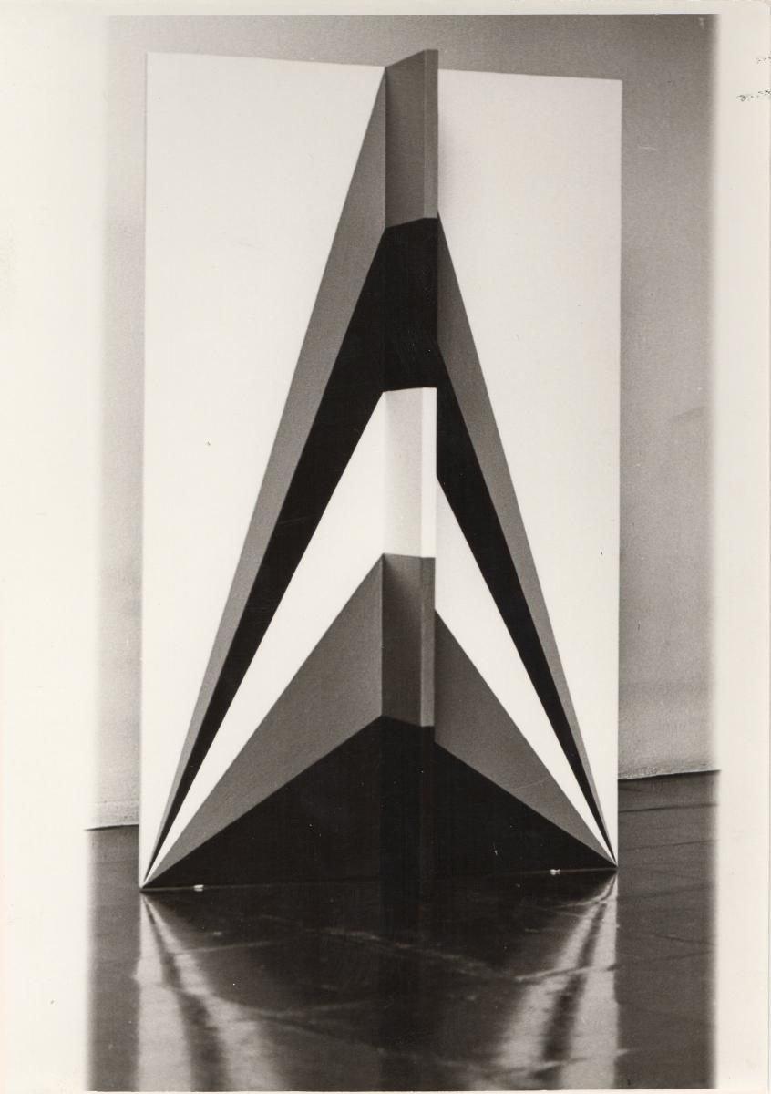 Ασπρόμαυρη εκτυπωμένη φωτογραφία έργου της Όπυς Ζούνη. Στην πίσω όψη, επιγραφές.