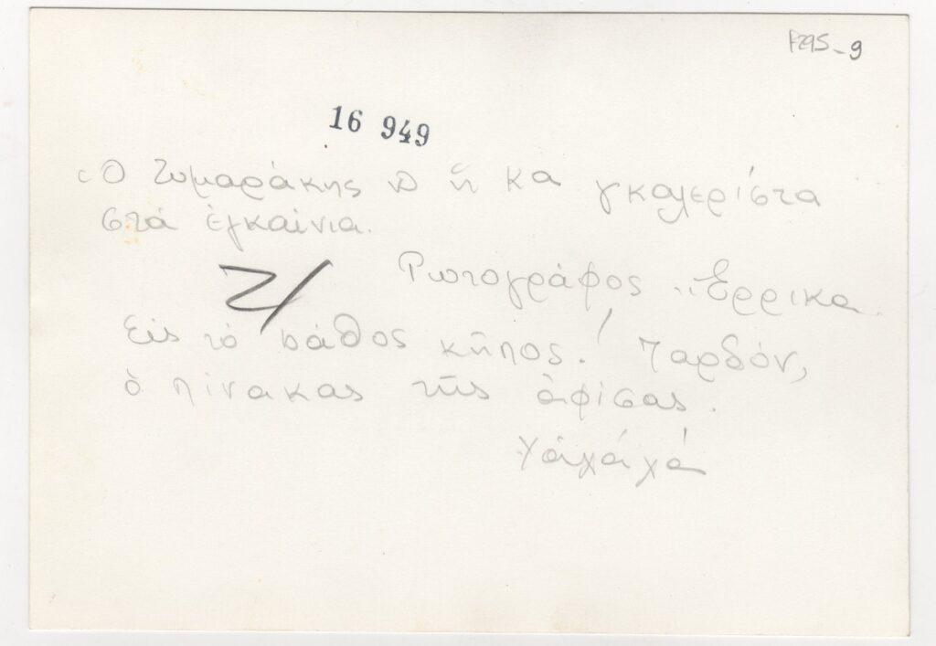 Φωτογραφία, α/μ, φωτογραφικό χαρτί, 12×17 εκ., του Γιώργου Ζυμαράκη με γκαλερίστα, από εγκαίνια έκθεσής του.