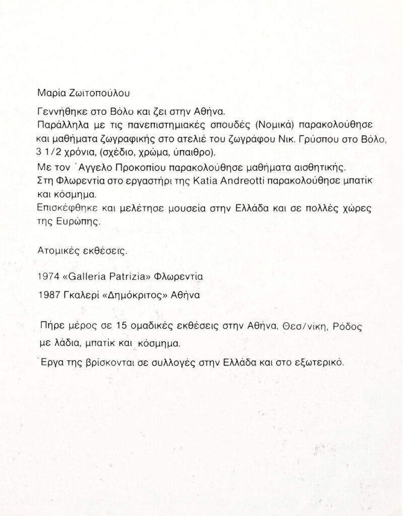 Μαρία Ζωϊτοπούλου. Πίνακες – Μπατίκ