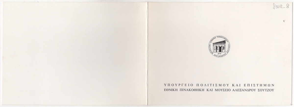Πρόσκληση, χαρτόνι αναδιπλωμένο, 11×15,5 εκ., αναδρομικής έκθεσης χαρακτικής του Άγγελου Θεοδωρόπουλου στην Εθνική Πινακοθήκη Αθηνών.