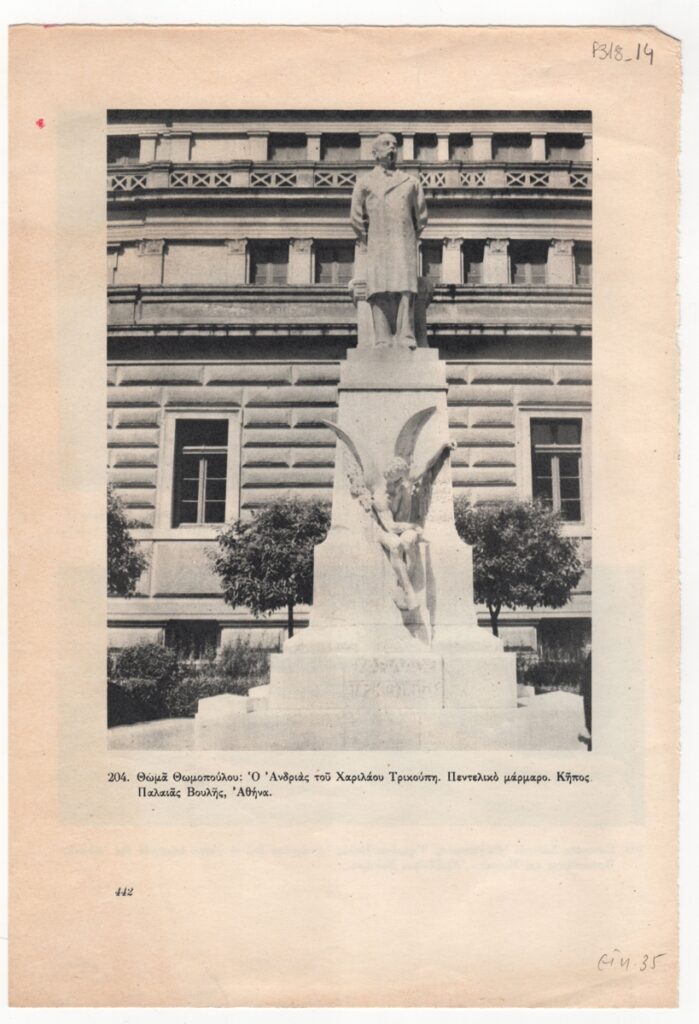 Απόκομμα, έντυπο, χαρτί, 28,0×19,2 εκ. στα ελληνικά. Αναπαραγωγή έργου του Θωμά Θωμόπουλου. Στο ίδιο απόκομμα: αναπαραγωγή έργων του Γιαννούλη Χαλεπά. Κάτω δεξιά επιγραφή.