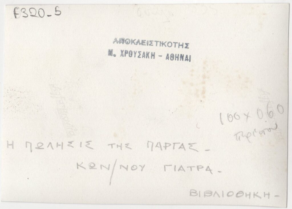 Φωτογραφία έργου του Κωνσταντίνου Γιατρά, α/μ, σε φωτογραφικό χαρτί, 7,7×10,2 εκ. Στην πίσω όψη επιγραφή και σφραγίδα φωτογράφου.