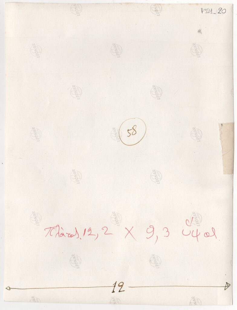 Φωτογραφία έργου του Αθανάσιου Ιατρίδη, α/μ, σε φωτογραφικό χαρτί, 23,0×17,4 εκ. Επιγραφές πάνω στο έργο. Στην πίσω όψη επιγραφή.
