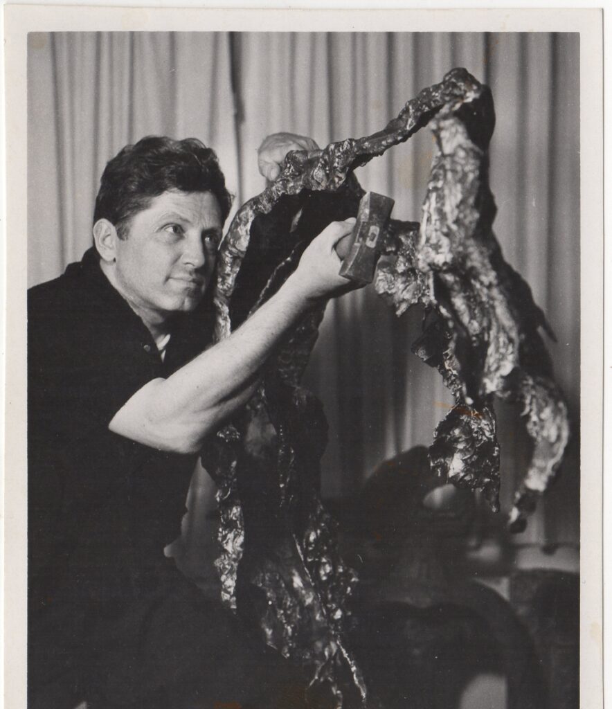 Φωτογραφία του Τώνη Σπητέρη μαζί με έργα της Ι.Βεροπούλου-Σπητέρη