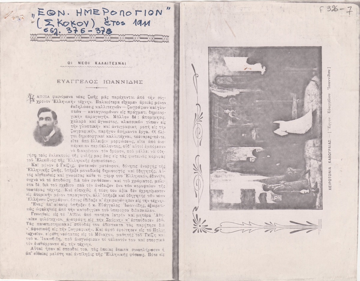 Φωτοαντίγραφο, χαρτί, 2 φφ, 17,5×22,5 εκ., στα ελληνικά, δημοσίευσης άρθρου για τον Ευάγγελο Ιωαννίδη.