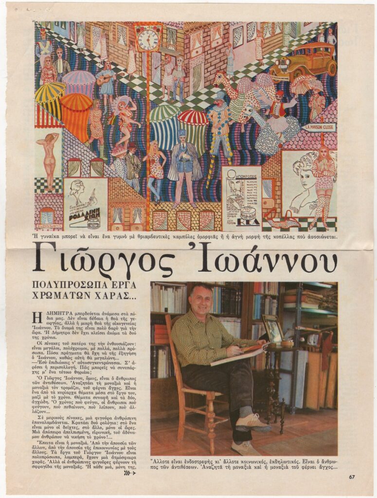 Απόκομμα, χαρτί ιλλουτρασιόν, 2 φφ, 31×23 εκ., στα ελληνικά, δημοσίευσης συνέντευξης του Γιώργου Ιωάννου.