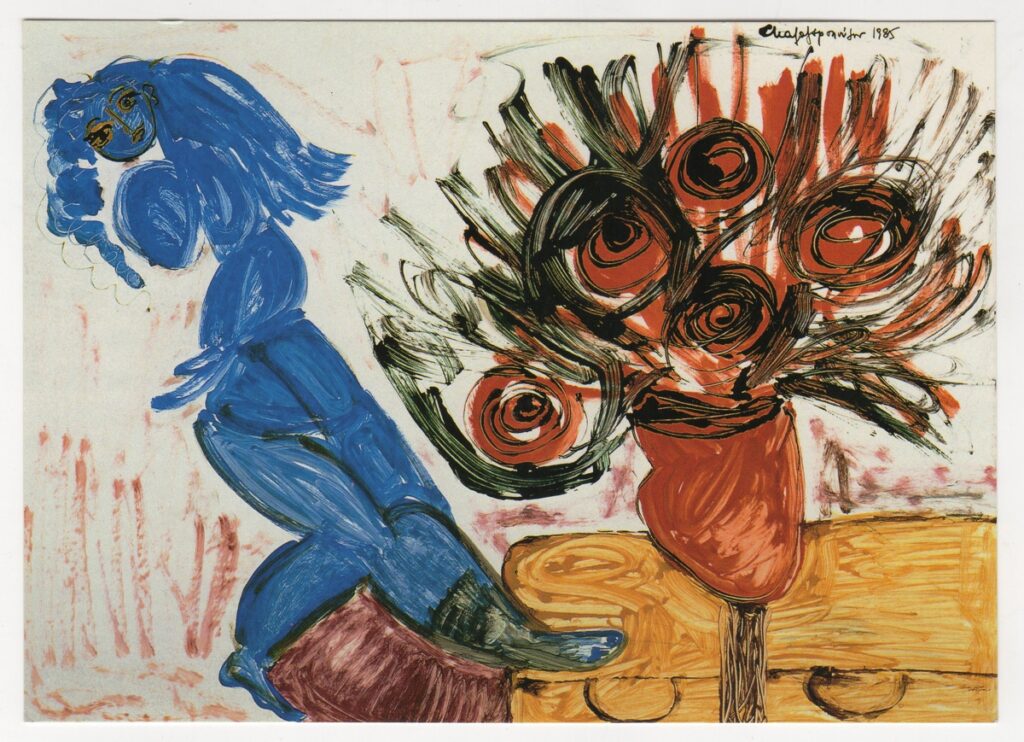Πρόσκληση, χαρτόνι ιλλουστρασιόν, 13×17,5 εκ., ατομικής έκθεσης ζωγραφικής της Σόνιας Καλογεροπούλου.