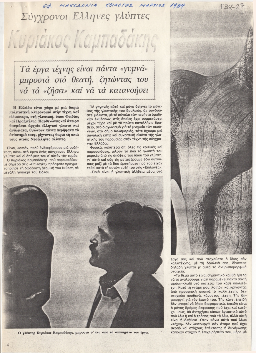 Καμπαδάκης 78, ατομική έκθεση γλυπτικής Κ.Καμπαδάκη, Γκαλερί Αργώ