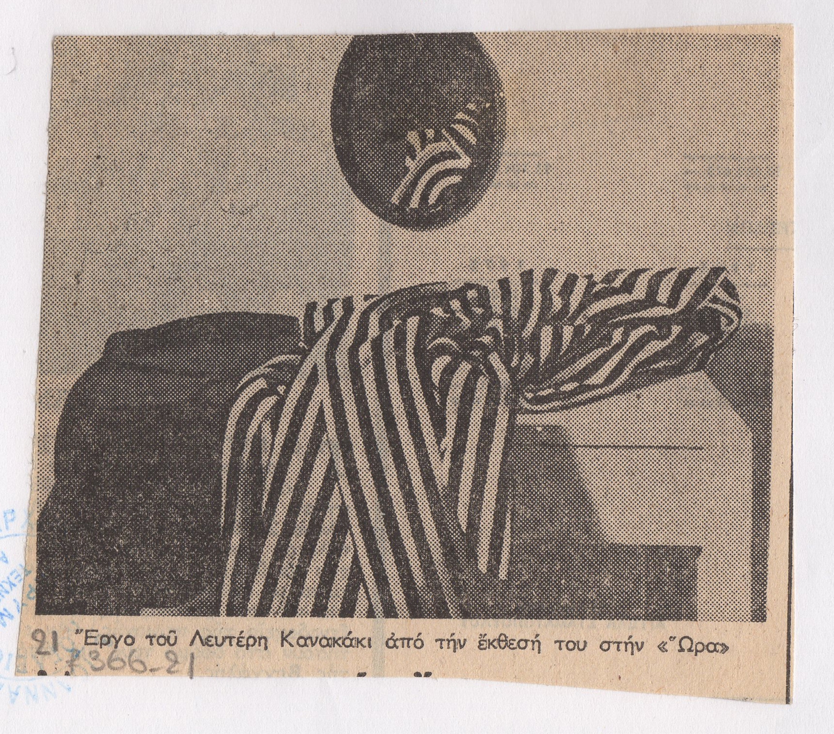 Απόκομμα εντύπου, χαρτί, 8,5×10 εκ., με αναπαραγωγή έργου, α/μ του Λευτέρη Κανακάκι στο Καλλιτεχνικό Πνευματικό Κέντρο Ώρα στη Αθήνα.