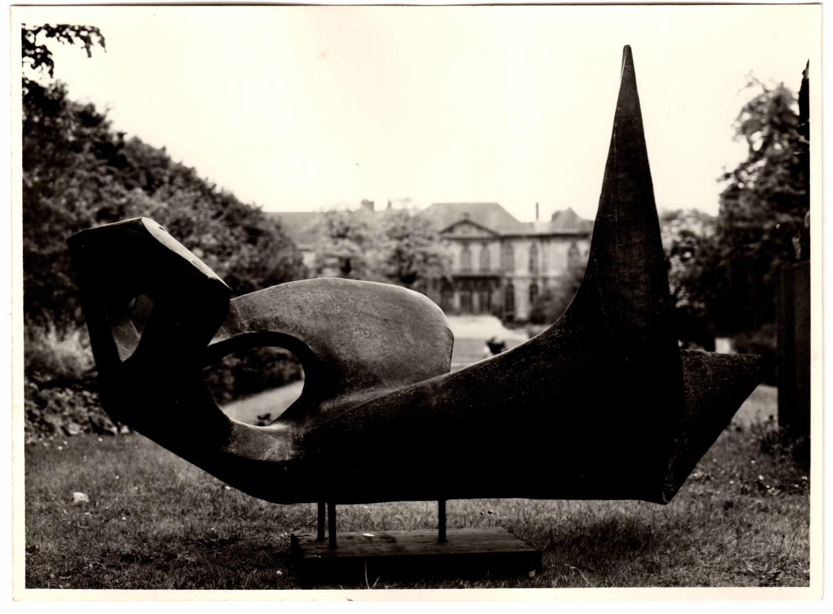 Ασπρόμαυρη εκτυπωμένη φωτογραφία έργου του Κώστα Ανδρέου. Στην πίσω όψη, επιγραφές και σφραγίδα του καλλιτέχνη.