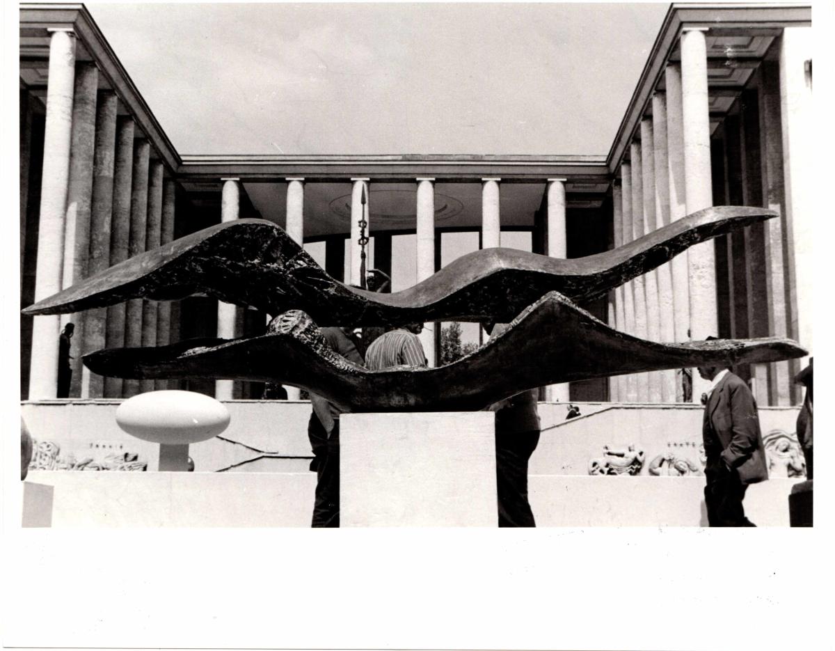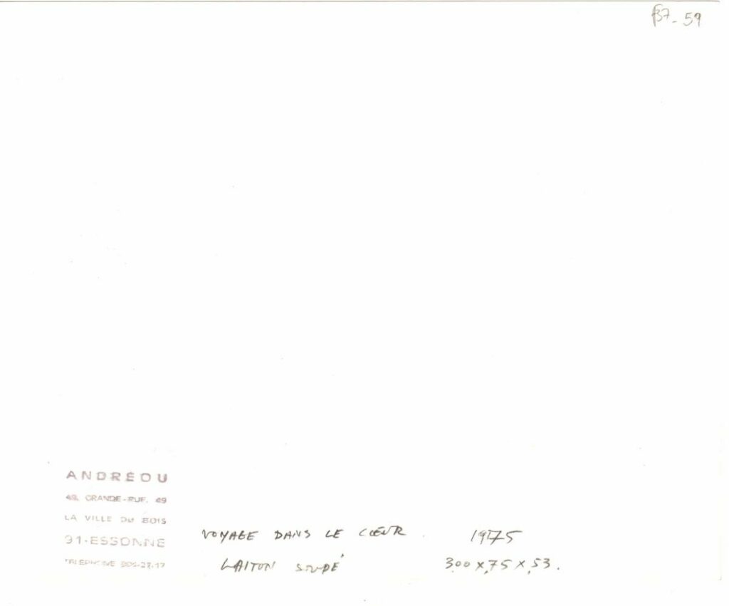 Ασπρόμαυρη εκτυπωμένη φωτογραφία έργου του Κώστα Ανδρέου. Στην πίσω όψη, επιγραφές.