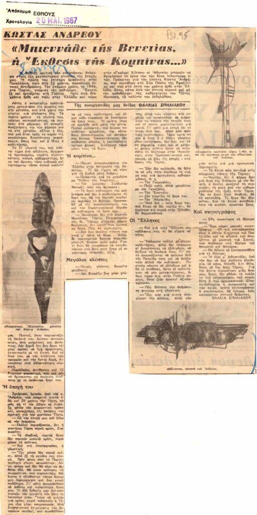 Κώστας Ανδρέου. Μπιεννάλε της Βενετίας, η Έκθεσις της Κομπίνας…