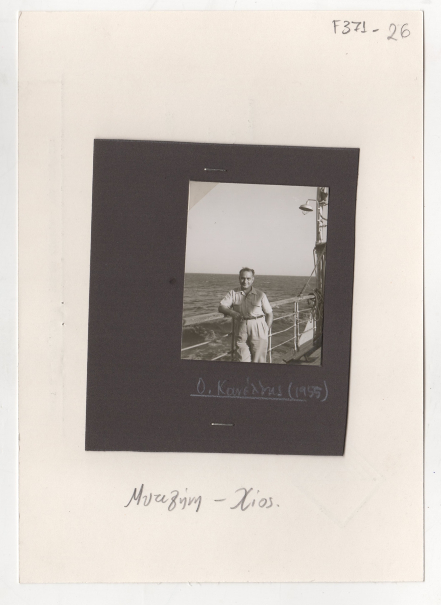 Φωτογραφία, α/μ, φωτογραφικό χαρτί συρραμμένη σε έντυπο, 5,5×4,5 εκ., του Ορέστη Κανέλλη στη Μυτιλήνη και Χίο.