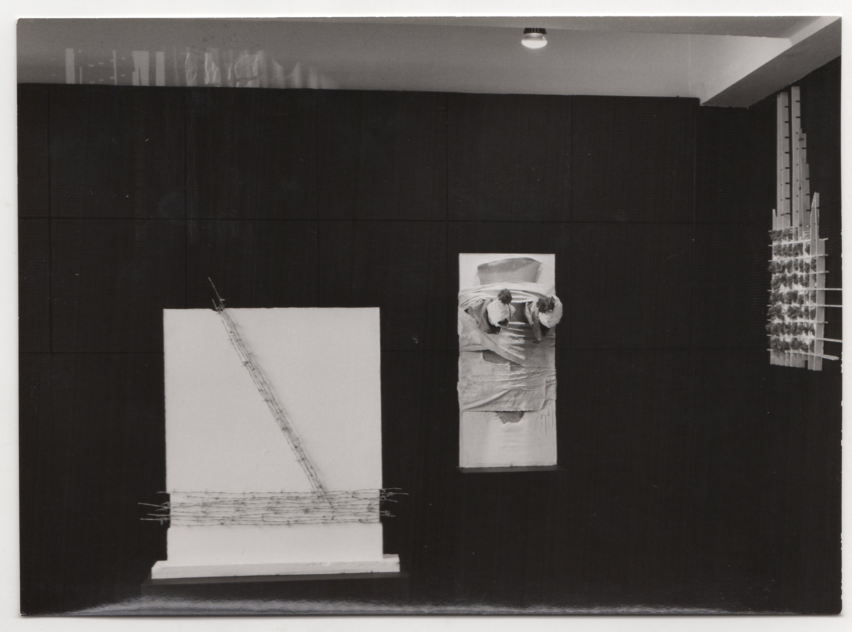 Φωτογραφία, α/μ, φωτογραφικό χαρτί, 13×17,5 εκ., έργων του Βλάση Κανιάρη, τοποθετημένα σε έκθεση.