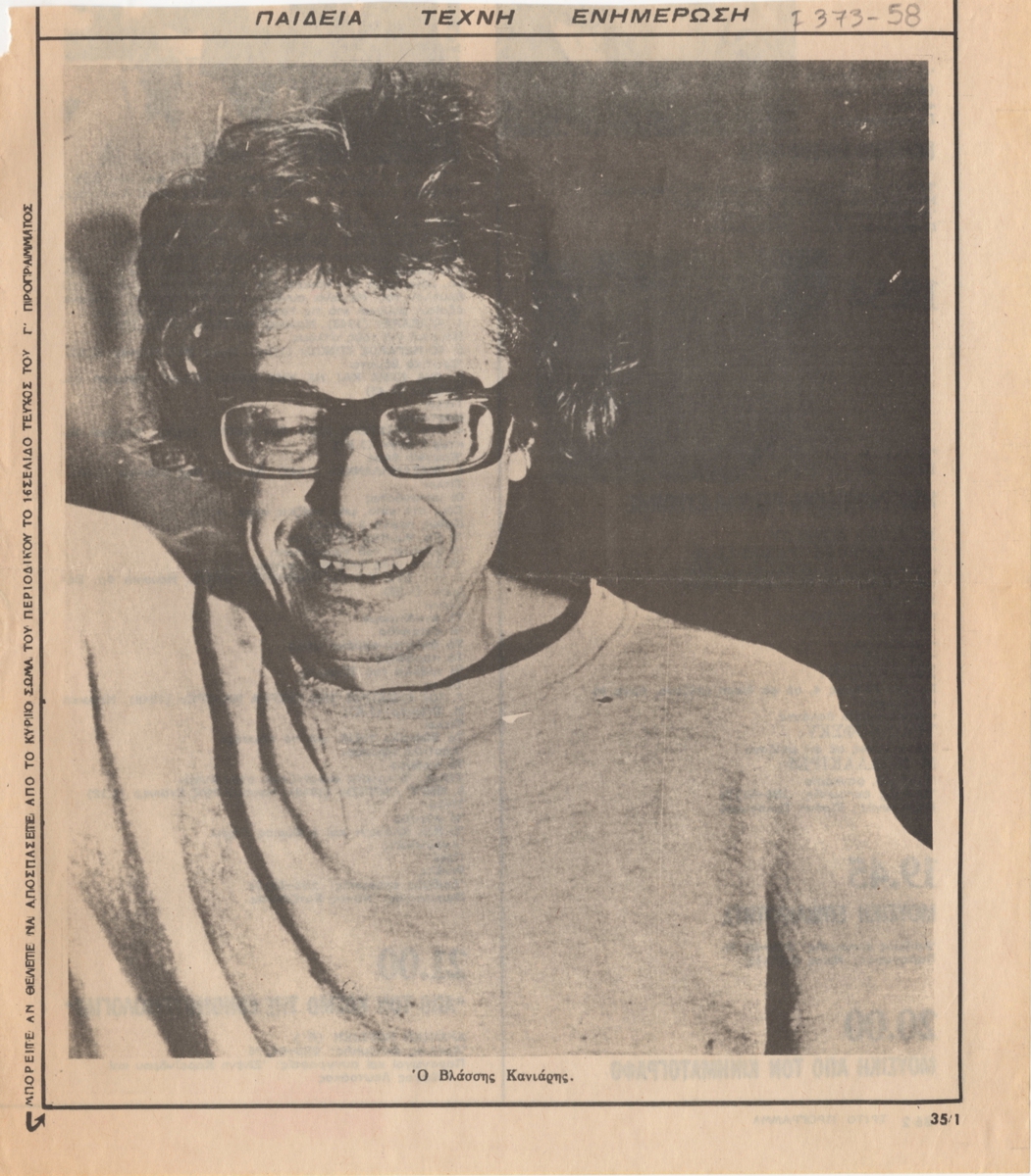 Απόκομμα εντύπου, χαρτί, 24×21 εκ., στα ελληνικά, με αναπαραγωγή φωτογραφίας του Βλάση Κανιάρη.