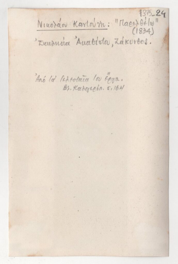 Φωτογραφία έργου, α/μ, σε φωτογραφικό χαρτί, 13,0×8,3 εκ. Στην πίσω όψη επιγραφή.