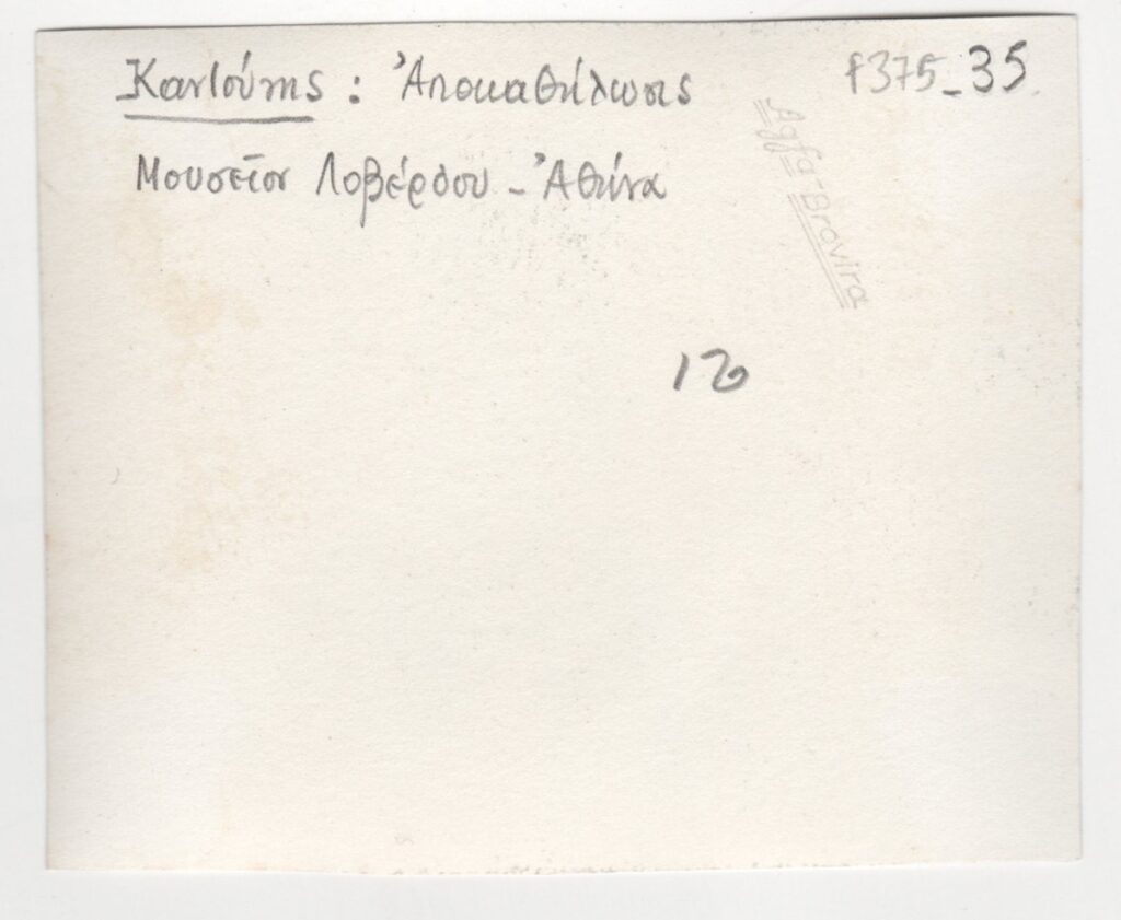 Φωτογραφία έργου, α/μ, σε φωτογραφικό χαρτί, 7,8×9,4 εκ., Στην πίσω επιγραφή.