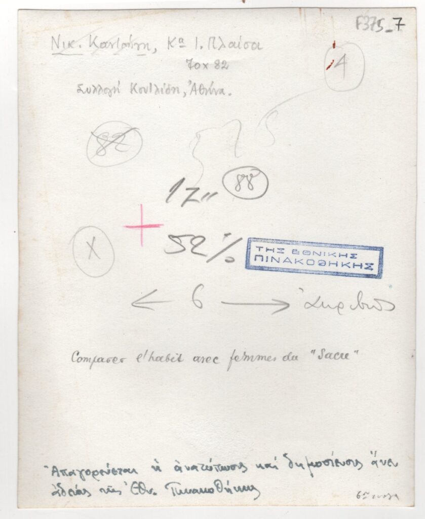 Φωτογραφία έργου, α/μ, σε φωτογραφικό χαρτί, 14,5×11,7 εκ. Στην πίσω όψη επιγραφή και σφραγίδα.