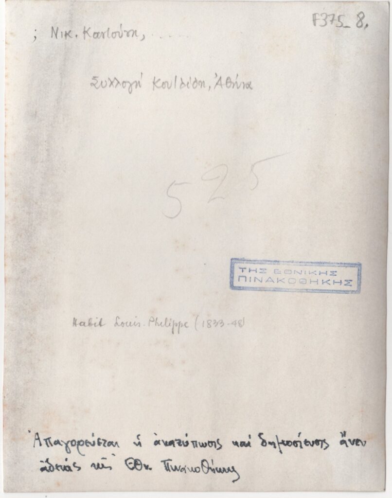 Φωτογραφία έργου, α/μ, σε φωτογραφικό χαρτί, 15,0×11,7 εκ. Στην πίσω όψη επιγραφές και σφραγίδα.