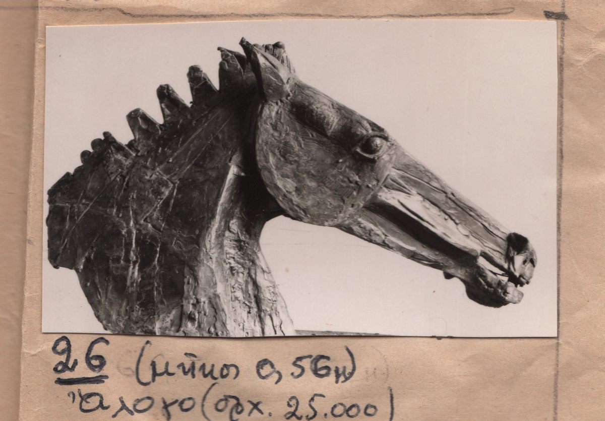 Φωτογραφία έργου, α/μ, σε φωτογραφικό χαρτί, 5,52×8,3 εκ. Το τεκμήριο είναι επικολλημένο μαζί με άλλες 29 φωτογραφίες έργων σε φύλλο χαρτιού, 54,5×64,0 εκ., όπου αποτυπώνονται με μολύβι τρία σχέδια έργων του καλλιτέχνη. Κάτω και δίπλα στη φωτογραφία επιγραφές με αρίθμηση, τίτλο έργου, τιμή πώλησης και διαστάσεις βάσης.