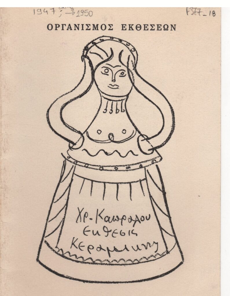 Έντυπο έκθεσης, στα ελληνικά, δίπτυχο, από χαρτόνι, 17,2×12,5 εκ. Αφορά στην έκθεση κεραμικής του Χρήστου Καπράλου στην Αθήνα το 1950. Περιέχει κείμενο του καλλιτέχνη και τιμοκατάλογο έργων. Το εξώφυλλο και το οπισθόφυλλο εικονογραφείται με αναπαραγωγή έργου. Στην αριστερή εσωτερική σελίδα και στο οπισθόφυλλο εκτεταμένες κριτικές σημειώσεις του Τώνη Σπητέρη για την έκθεση.