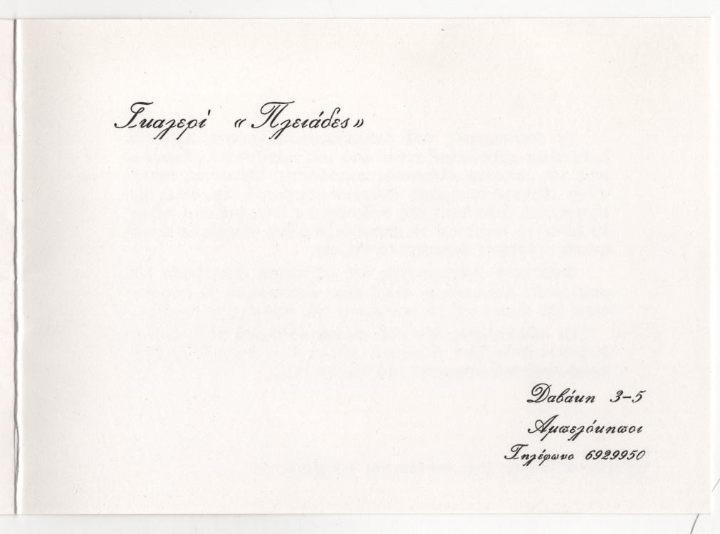 Πρόσκληση της ατομικής έκθεσης με λιθογραφίες του γλύπτη Χρήστου Καπράλου στην Αίθουσα Τέχνης “Πλειάδες” στην Αθήνα. Το έντυπο περιέχει σύντομη παρουσίαση του έργου του καλλιτέχνη.