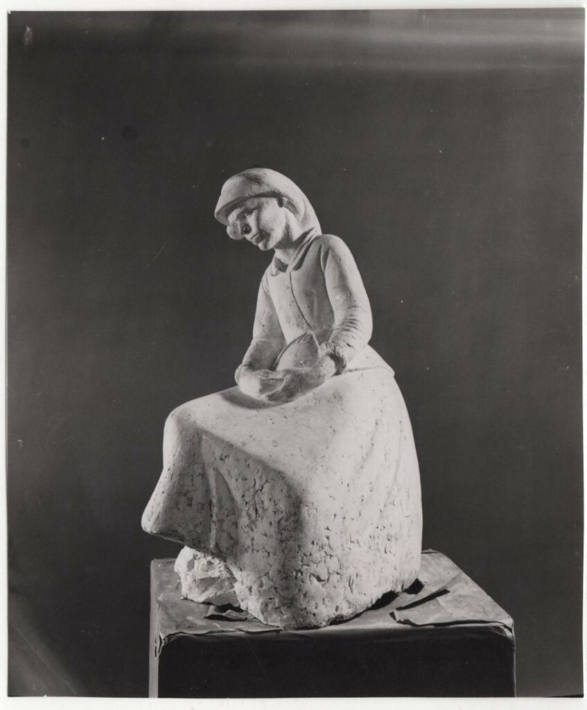 Ασπρόμαυρη εκτυπωμένη φωτογραφία έργου του Χρήστου Καπράλου. Στην πίσω όψη, επιγραφές.