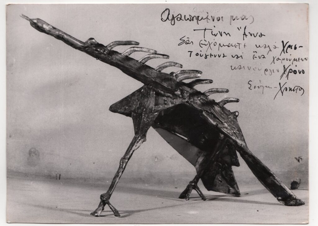 Φωτογραφία έργου, α/μ, σε φωτογραφικό χαρτί, 16,8×23,0 εκ. Στην επιφάνεια της φωτογραφίας χειρόγραφες ευχές από το ζεύγος Καπράλου προς το ζεύγος Σπητέρη. Επικολλημένη στην πίσω όψη δεύτερη φωτογραφία του έργου (GR TITSpit f377_65) από άλλη οπτική γωνία.