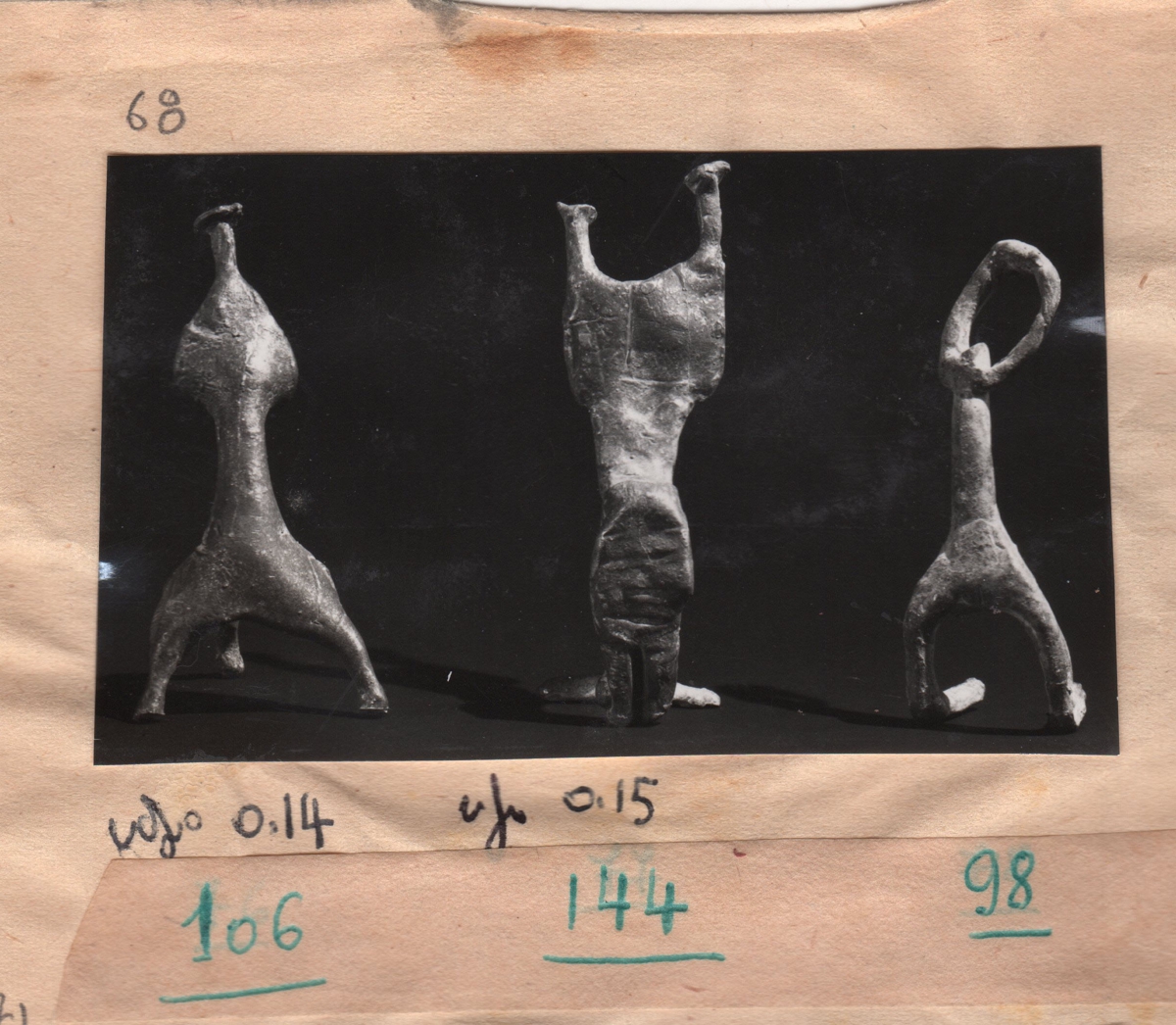 Φωτογραφία τριών έργων, α/μ, σε φωτογραφικό χαρτί, 5,3×9,0 εκ. Η φωτογραφία είναι επικολλημένη σε φύλλο χαρτιού με την επιγραφή “ΠΙΝΑΚΑΣ ΤΡΙΤΟΣ”, 42,5×37,5 εκ. Κάτω από την φωτογραφία αρίθμηση και διαστάσεις.