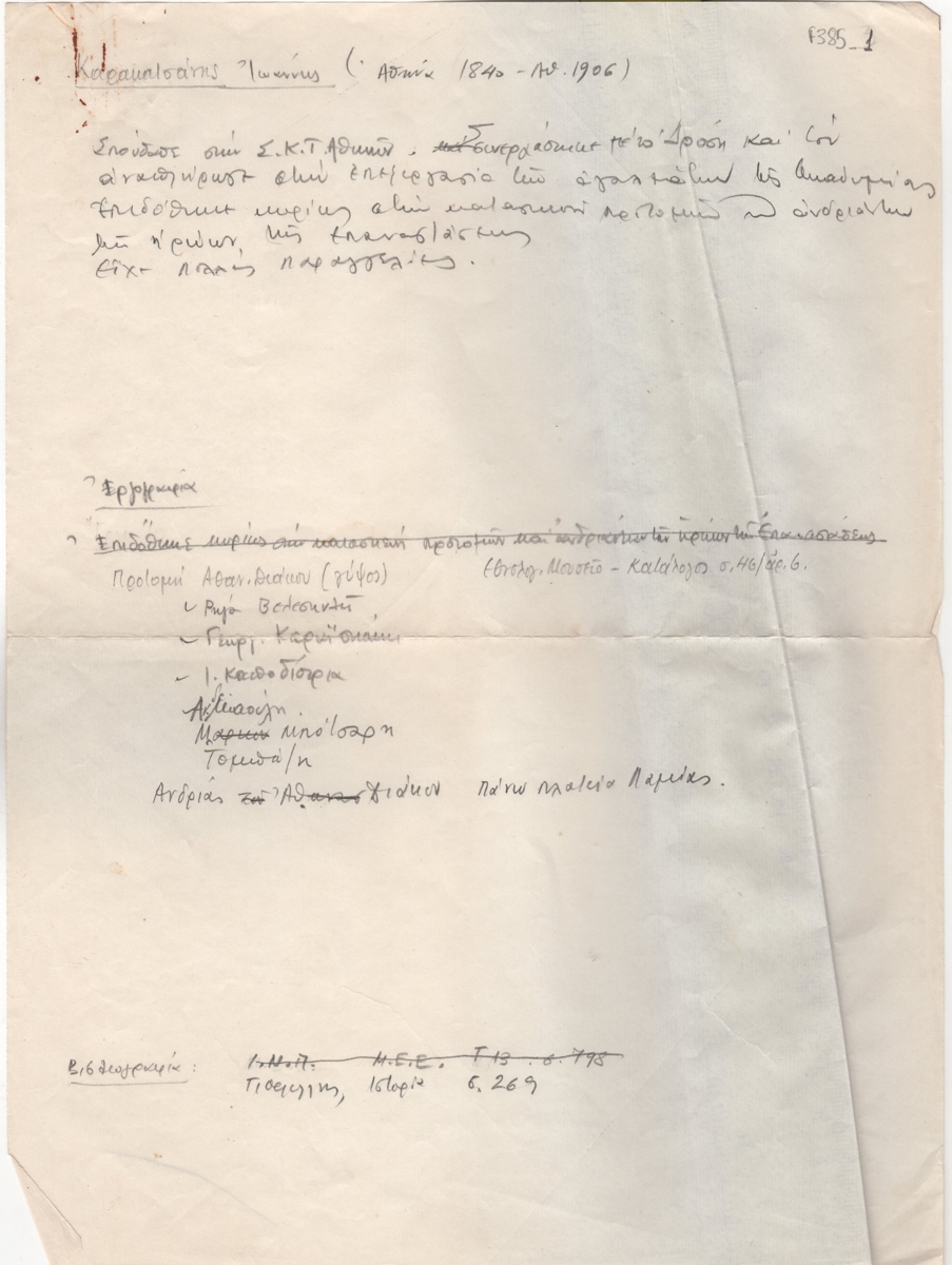Βιογραφικό σημείωμα του Ιωάννη Καρακατσάνη