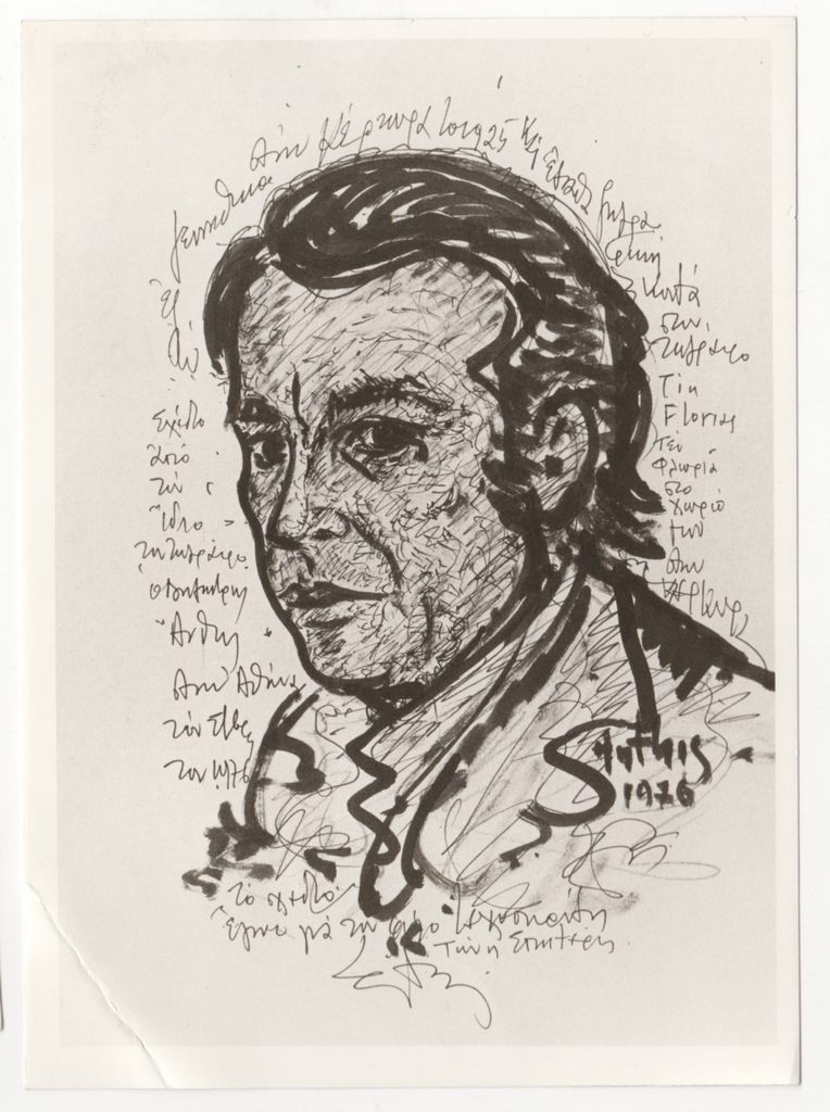 Φωτογραφία, α/μ, φωτογραφικό χαρτί, 17,1×13,0 εκ. Αναπαραγωγή αυτοπροσωπογραφίας του Δημήτρη Άνθη. Περιμετρικά της μορφής εκτυλίσσεται χειρόγραφο βιογραφικό του καλλιτέχνη. Στην πίσω όψη επιγραφές.