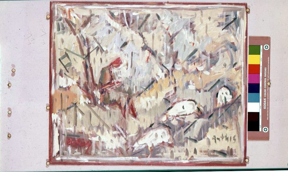Διαφάνεια, έγχρωμη, θετικό φιλμ, χωρίς πλαίσιο, 6,2×10 εκ. Αναπαραγωγή έργου του Δημήτρη Άνθη. Συνοδεύεται από απόκομμα χαρτιού με επιγραφή με τα στοιχεία του έργου.
