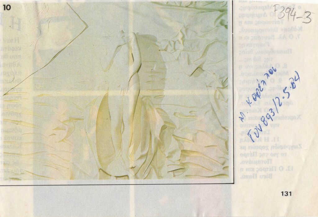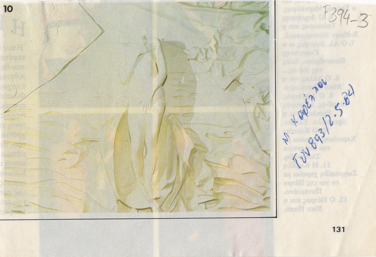 Απόκομμα, χαρτί ιλλουστρασιόν, 9,5×14 εκ., δημοσίευσης αναπαραγωγής έργου της Μαρίας Καρέλλα.