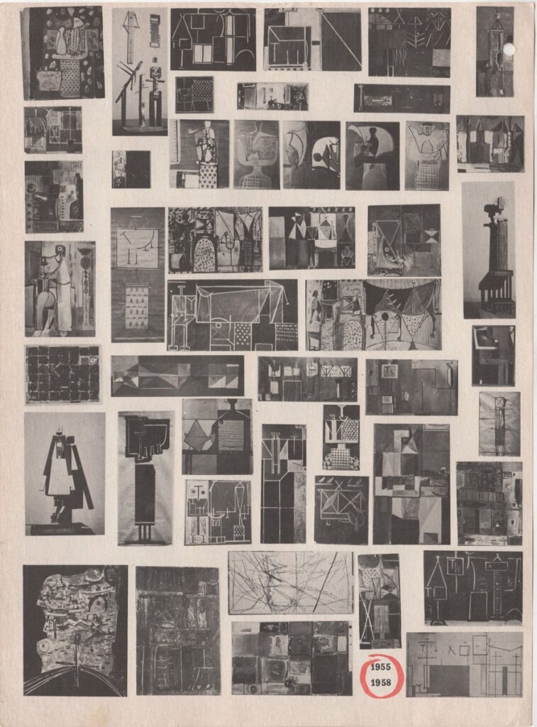 Απόκομμα, χαρτί ιλλουστρασιόν, 13 φφ, 28×21 εκ., στα ελληνικά, δημοσιεύσεων κριτικών για το εικαστικό έργο του Κοσμά Ξενάκη. Ειδικότερα συμπεριλαμβάνονται κείμενα του ίδιου και κριτικές των Ελένης Βακαλό, Αλέξανδρου Ξύδη και Μαρίνου Καλλιγά.