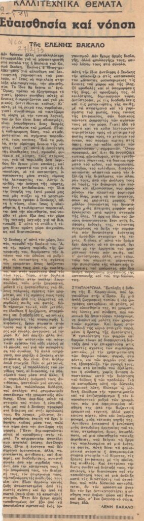 Το κείμενο εντάσσεται στη στήλη “Καλλιτεχνικά Θέματα” του εντύπου.