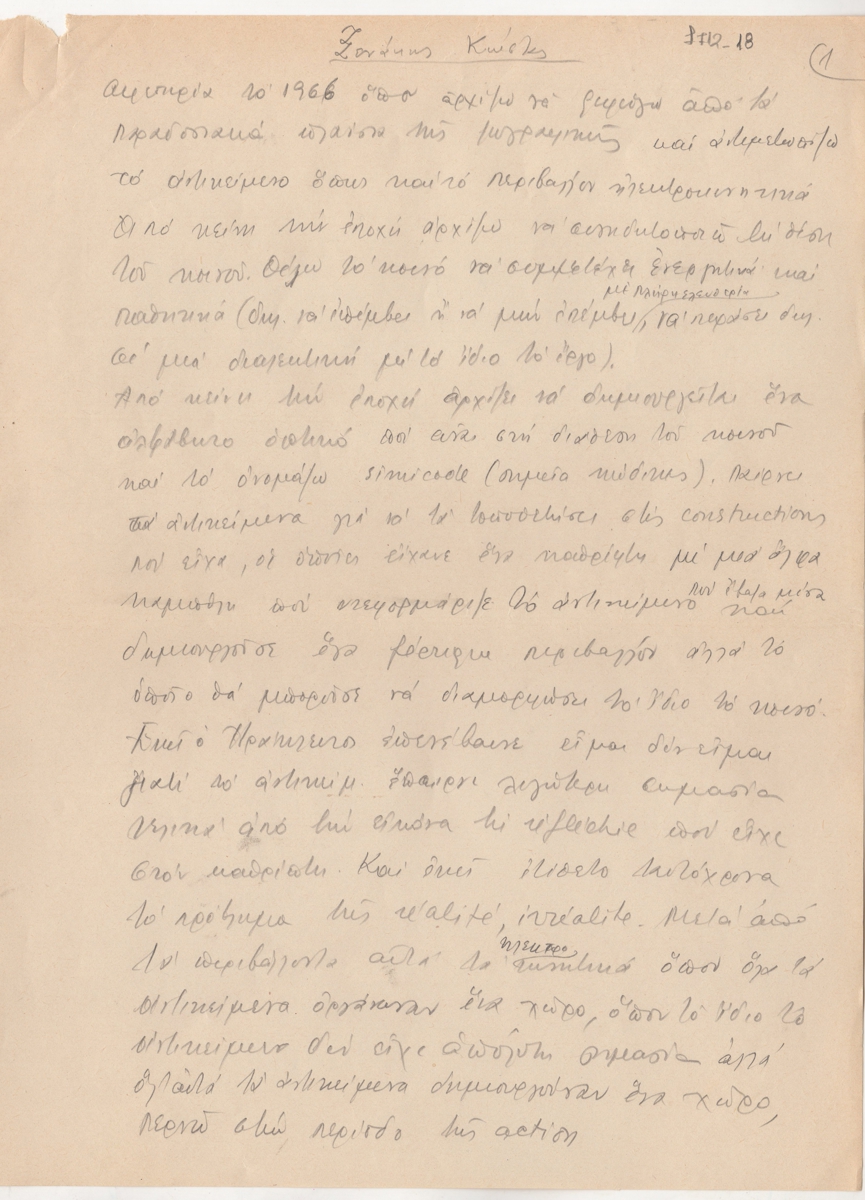 Κείμενο, χειρόγραφο με μολύβι, χαρτί, 25 φφ, στα ελληνικά, για το έργο του Κωνσταντίνου Ξενάκη. Ο καλλιτέχνης εκφράζει τις απόψεις του για την τέχνη του.