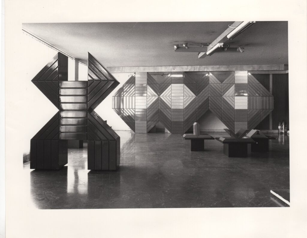 Φωτογραφία έκθεσης έργων του Μιχάλη Κατζουράκη, α/μ, σε φωτογραφικό χαρτί, 20,5×25,4 εκ. Στην πίσω όψη σφραγίδα.