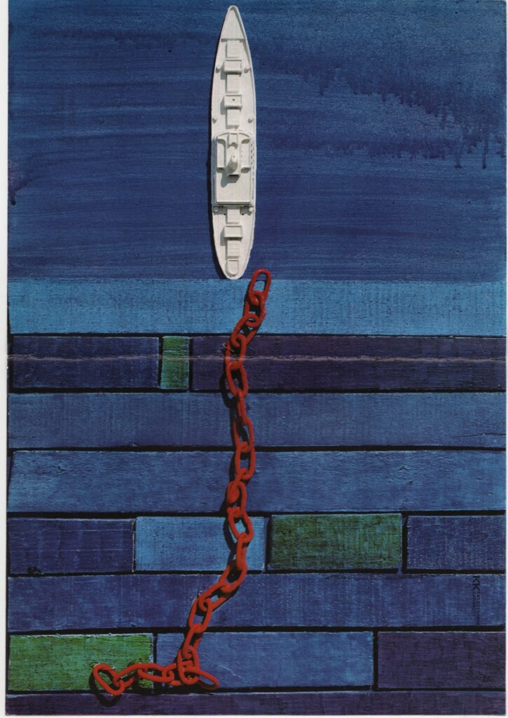 Έντυπο του Διαφημιστικού Κέντρου Αθηνών Κ&Κ, 33,4×23,0 εκ. Αναπαραγωγή έργου του Μιχάλη Κατζουράκη.
