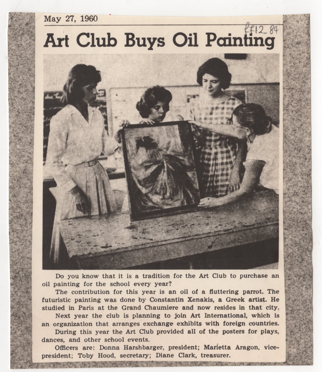 Φωτοαντίγραφο, χαρτί, 16×13,5 εκ., στα αγγλικά, δημοσίευσης άρθρου το οποίο αναφέρεται στην απόκτηση έργου του Κωνσταντίνου Ξενάκη από το Art Club.